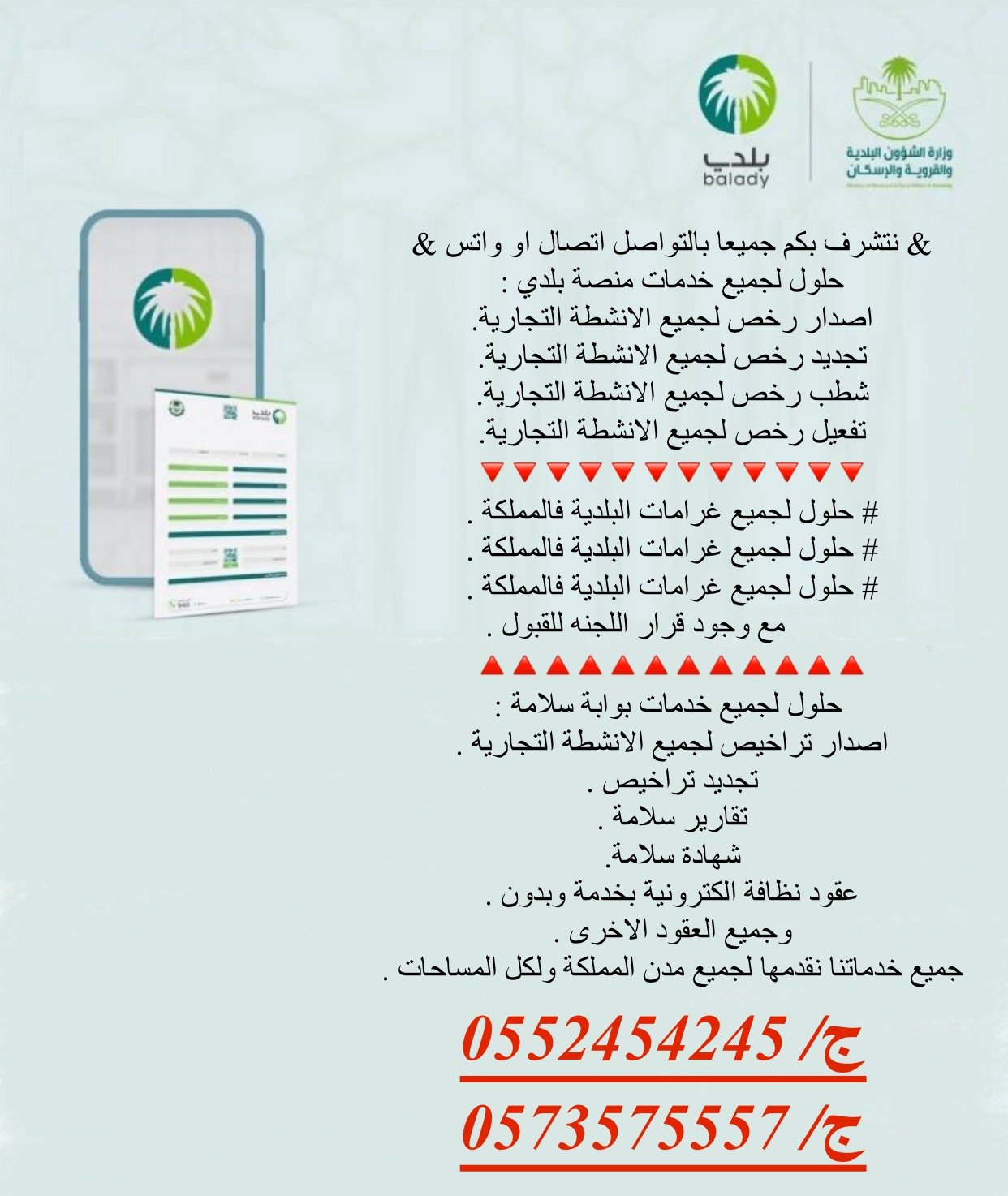 رخص منصة بلدي وتراخيص سلامة لجميع الانشطة بالمملكة