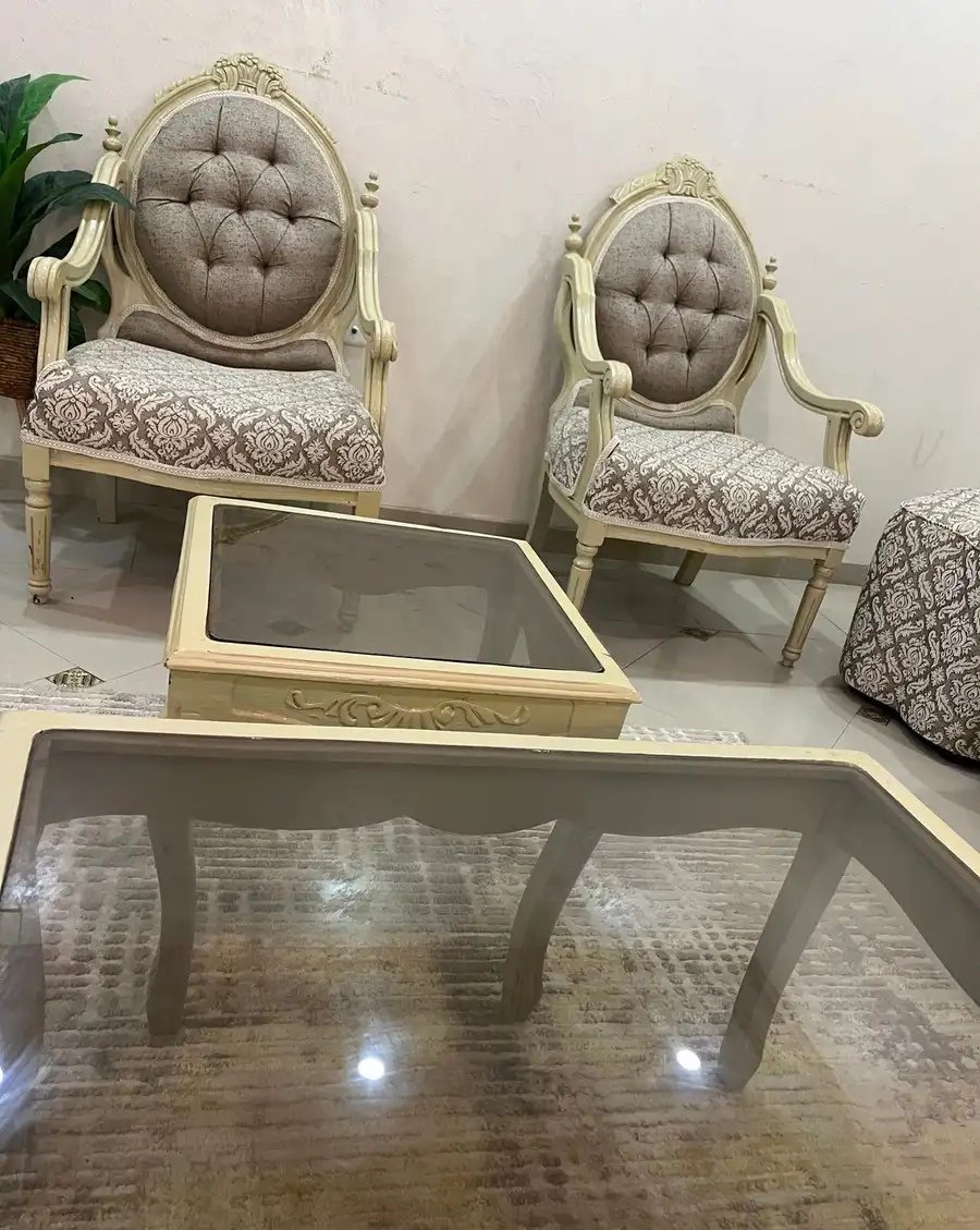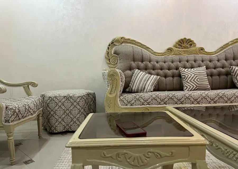 للبيع كنب تركي جديد كامل بجميع القطع والطاولات والستارة مجلس 6X5